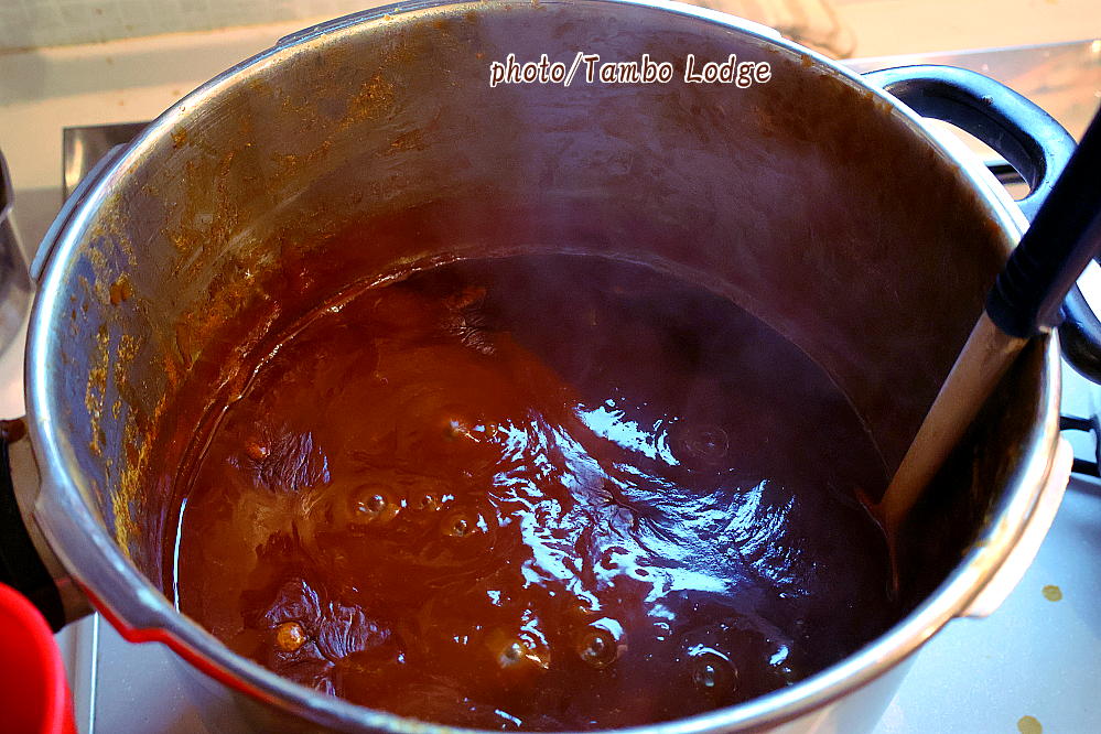 トマトを使わない、Tambo Lodgeオリジナルの超手作りの「中濃ソース」を今日作りました。材料はすべてオーガニック又は自然農法のものばかりです。