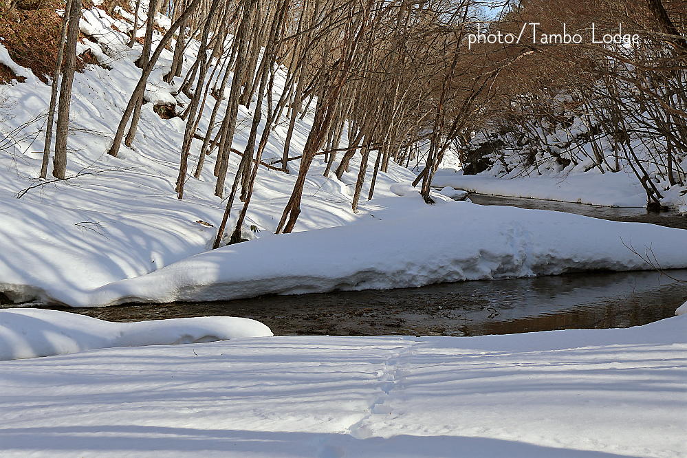今回は引き上げに行くので、行きはほぼ空身の状態です。なので、それほど雪を踏み抜くこともなく、現場に到着しました。