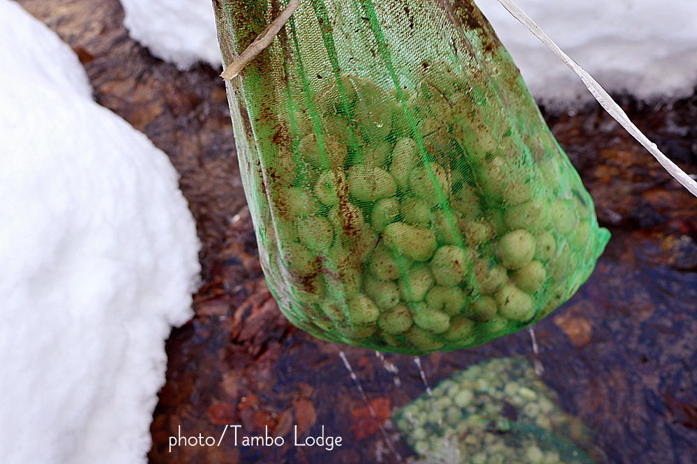 あるある、流されずにじっと耐えてくれたチューニョ(凍み芋)たち。さあ引き上げて持ち帰りましょう。