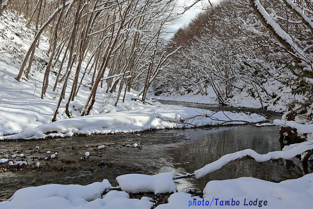 少しづつ雪も増えましたが、無事にTambo Lodgeの裏の川に降りて回収できました。💪